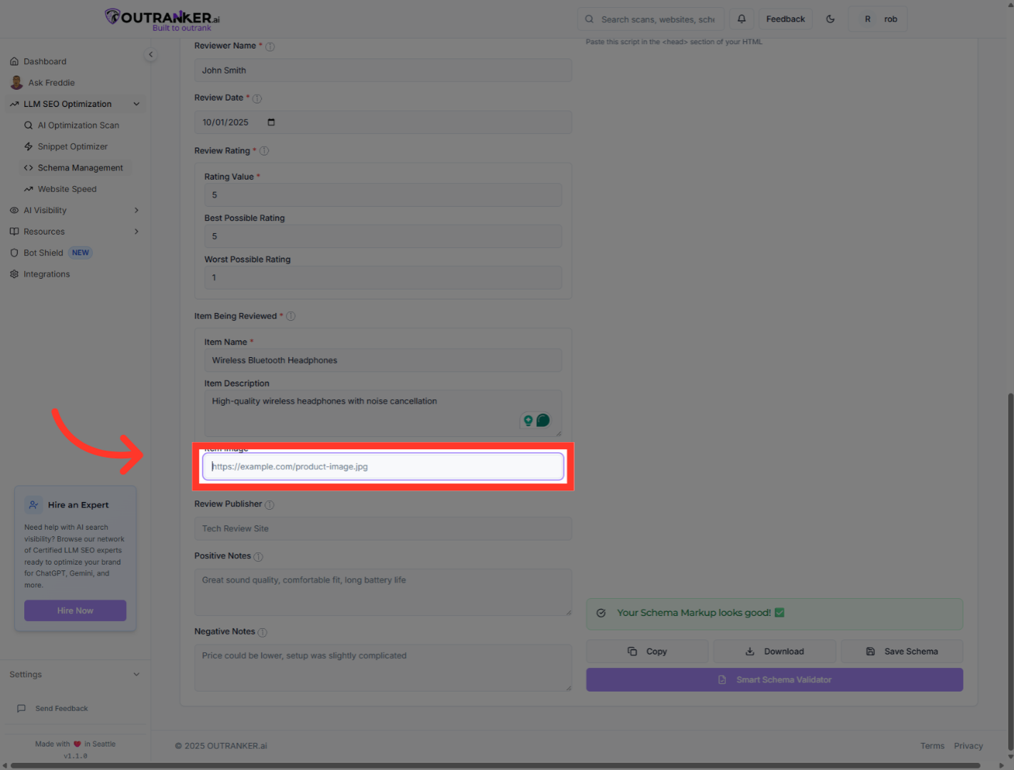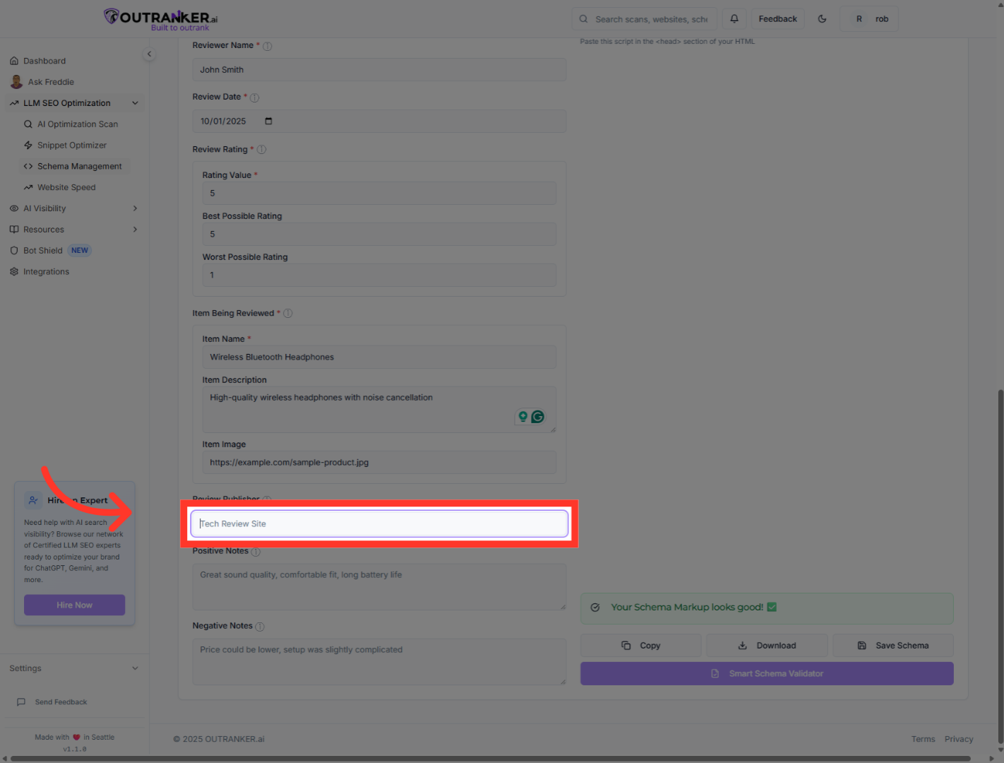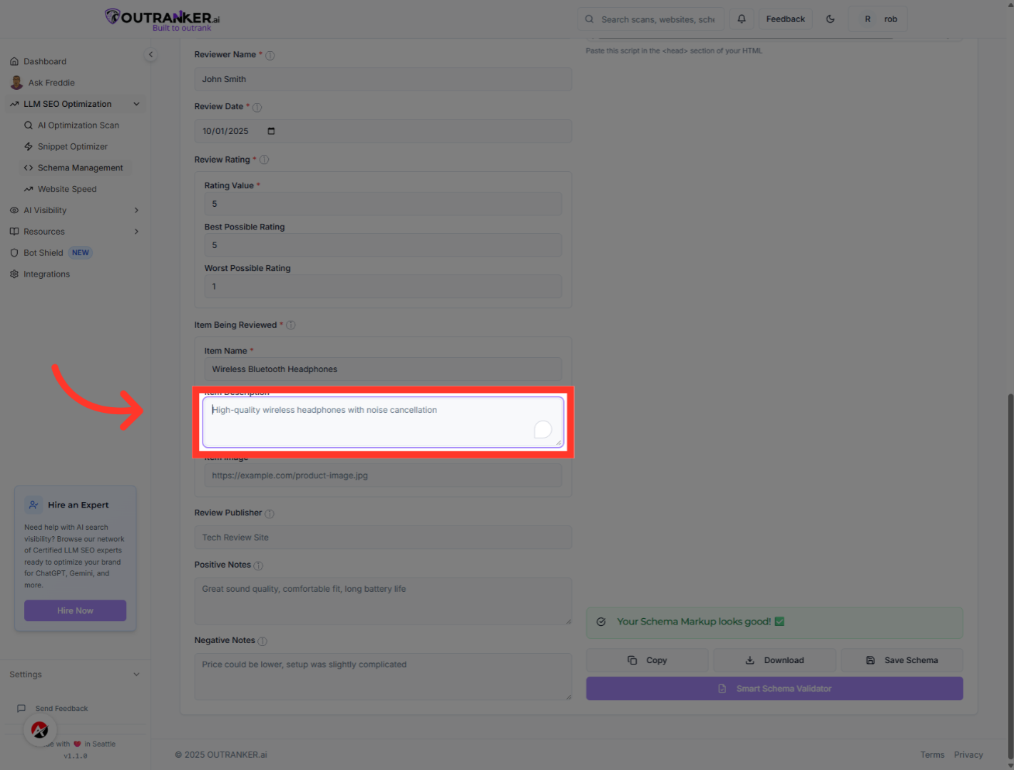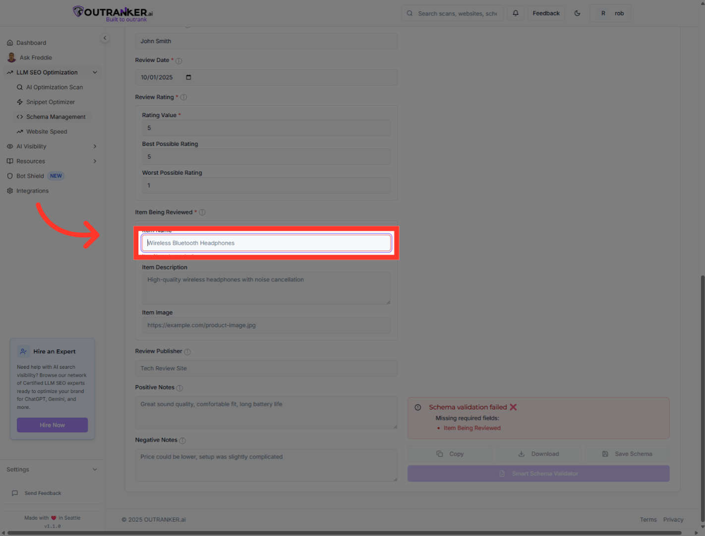 This tutorial guides you through generating a review schema using Outranker's Schema Management feature