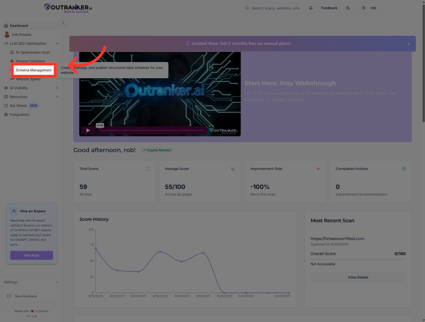 Next, select "Schema Management" to open the section where you can manage your schema markup settings.