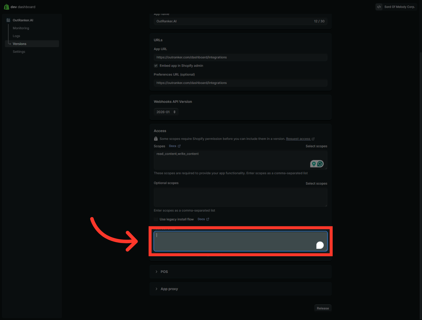 “Next, copy the Client Secret from Shopify. Return to Outranker and paste it into the matching field. Be careful with this value, since it is part of the secure connection between Shopify and Outranker.”