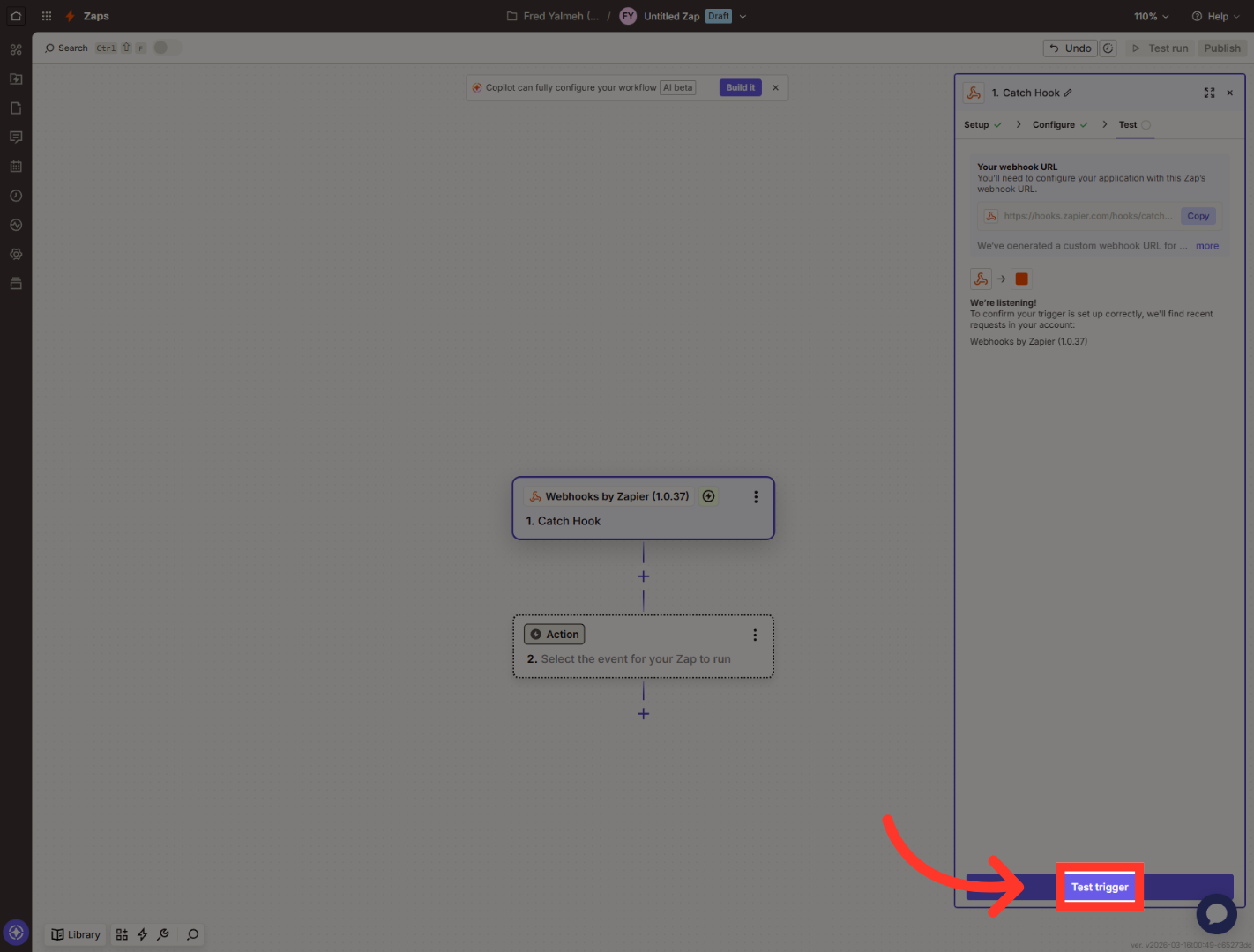 “Zapier will now generate a webhook URL for you. Click Copy to copy that URL. You’ll paste it into Outranker in the next step.”