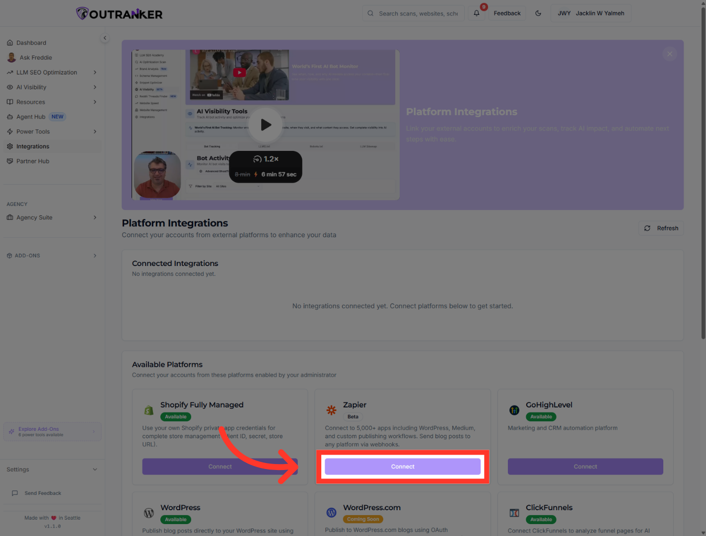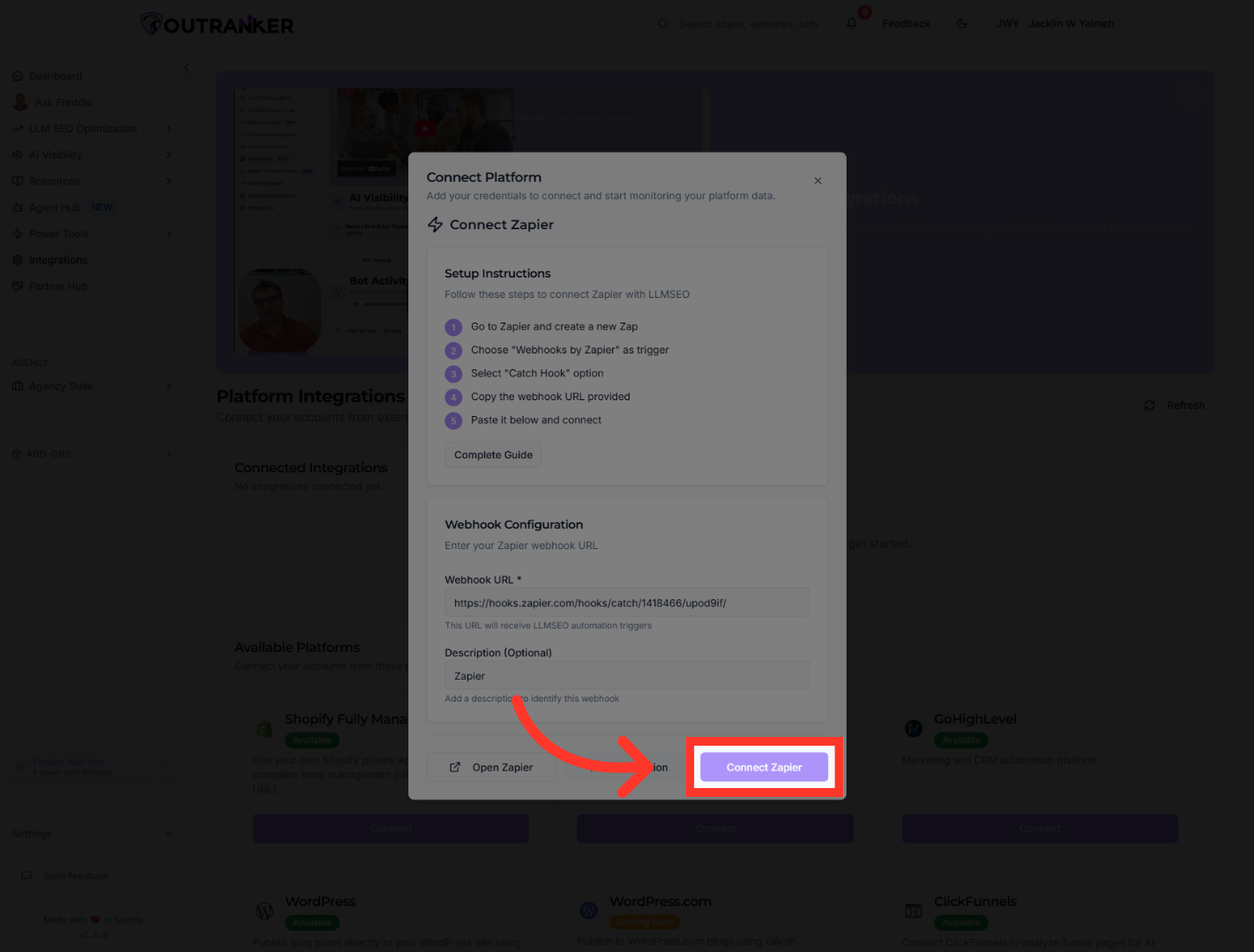 “In this video, you’ll learn how to connect Zapier with the Outranker platform. We’ll go step by step, so you can set up the webhook correctly, test the connection, and finish the integration with confidence.”