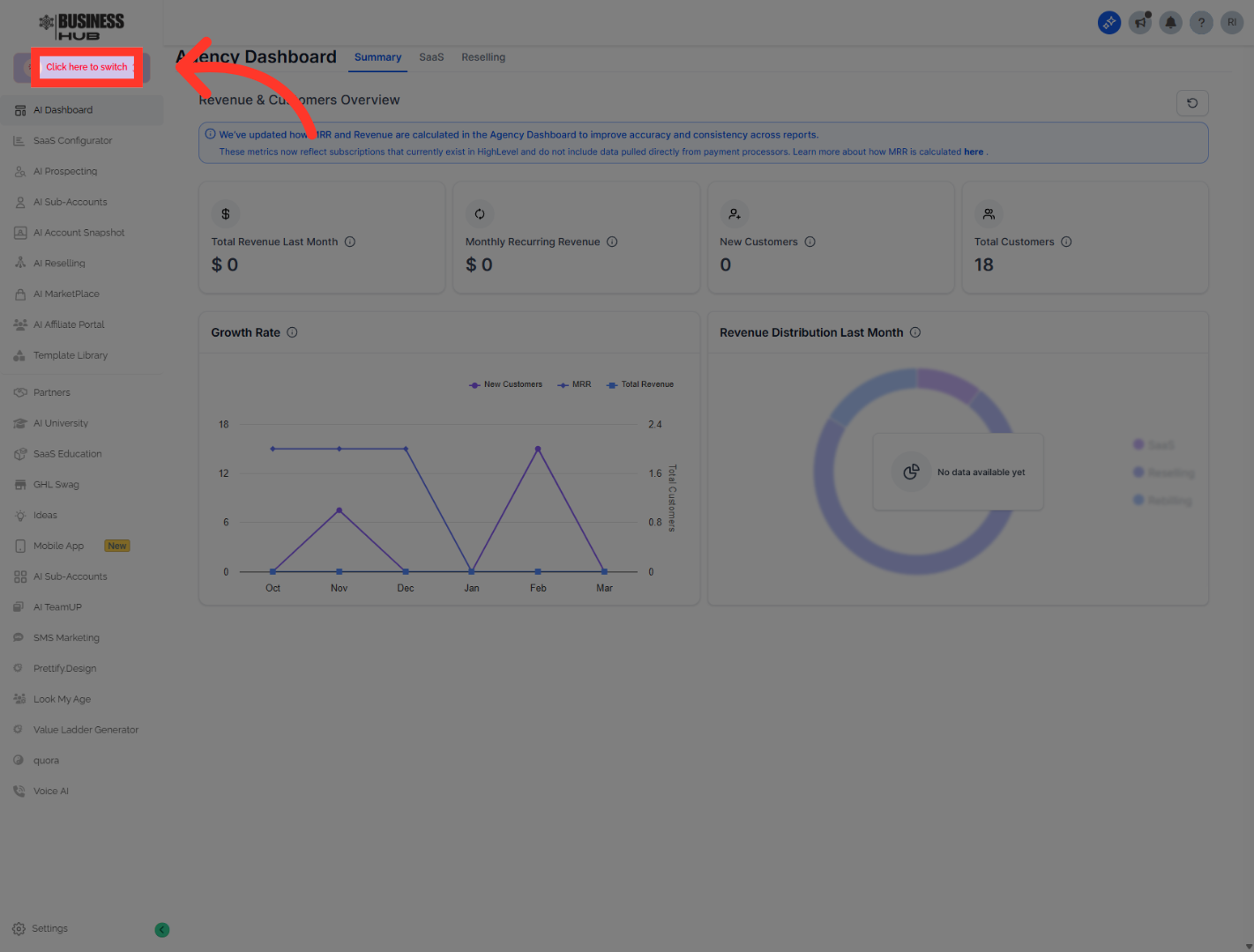 Click "Settings" to access configuration options in Business Hub.