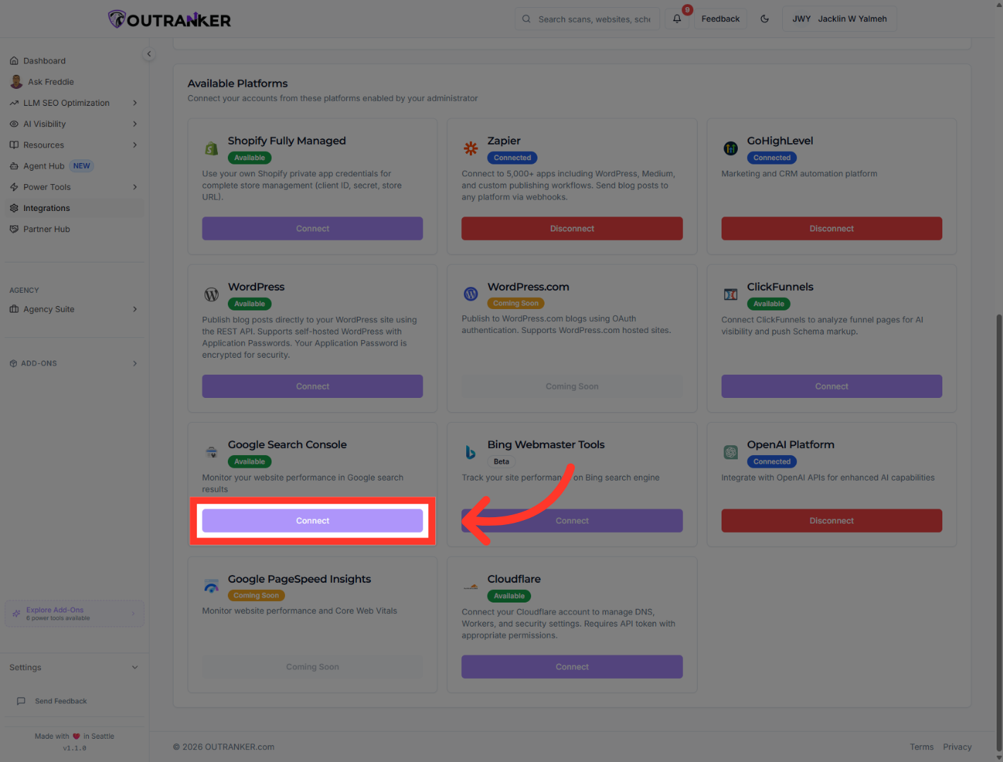 “In this video, you’ll learn how to configure Google Cloud integration with Outranker AI.” “This setup allows Outranker to securely connect with Google services using OAuth, which is essential for authenticated access and deeper platform integrations.” “We’ll walk through the full process step by step — from creating a Google Cloud project to generating OAuth credentials and completing authorization.”