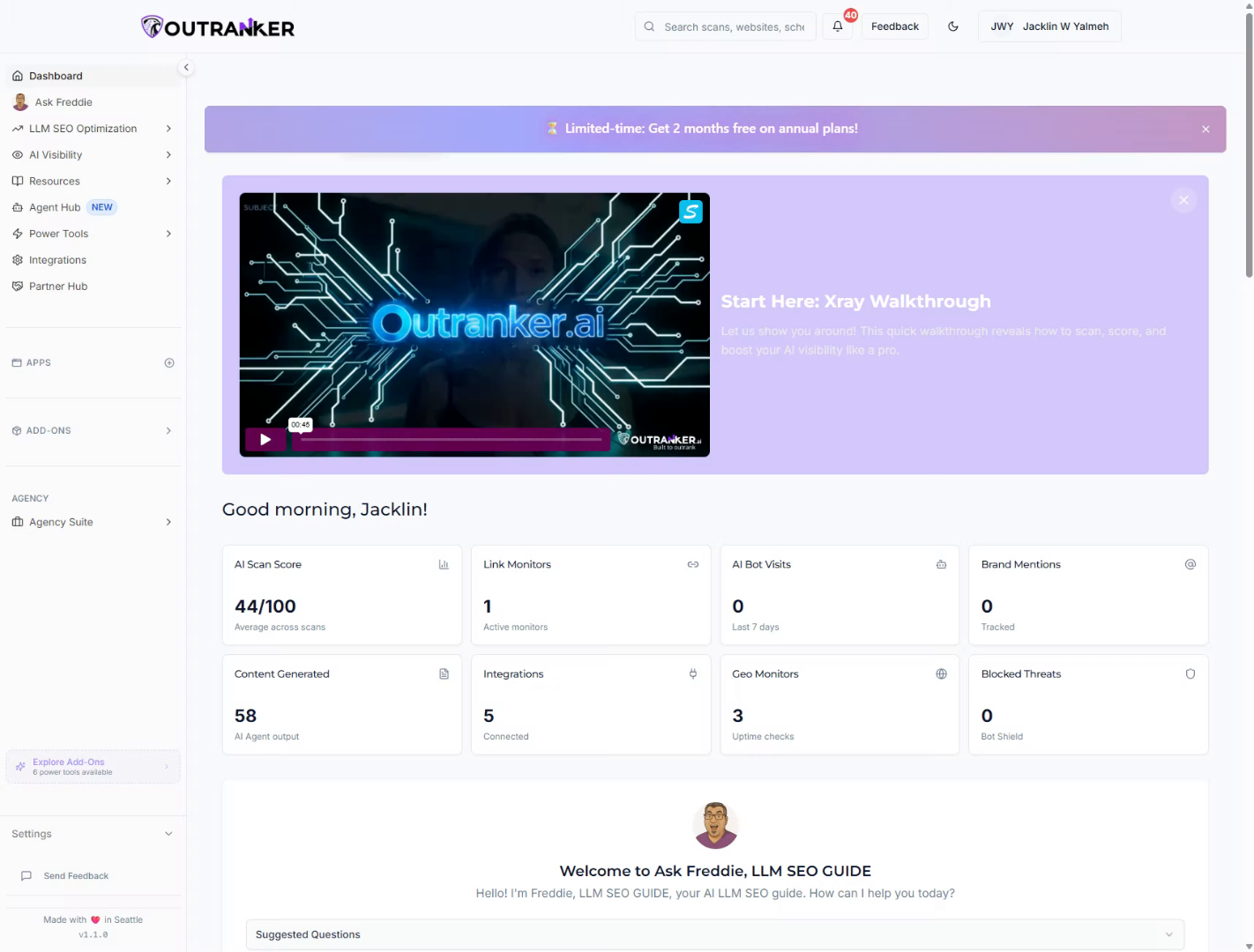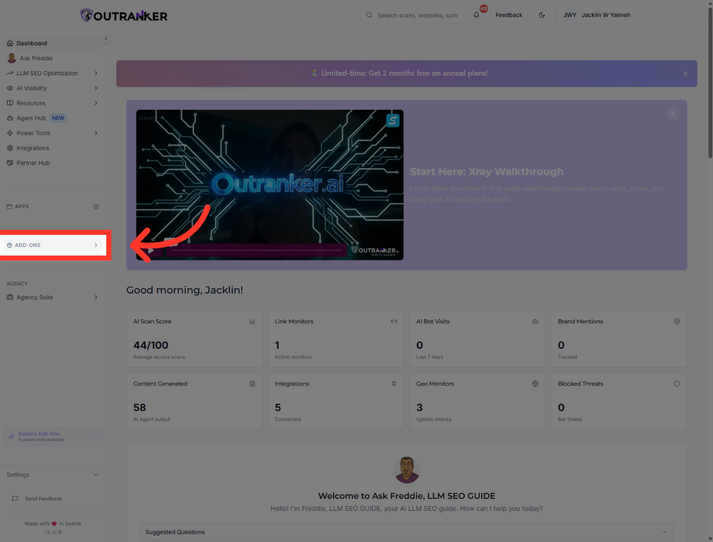 “Start inside Outranker. In the left menu, click Add-Ons. This is where you manage extra tools and features.”