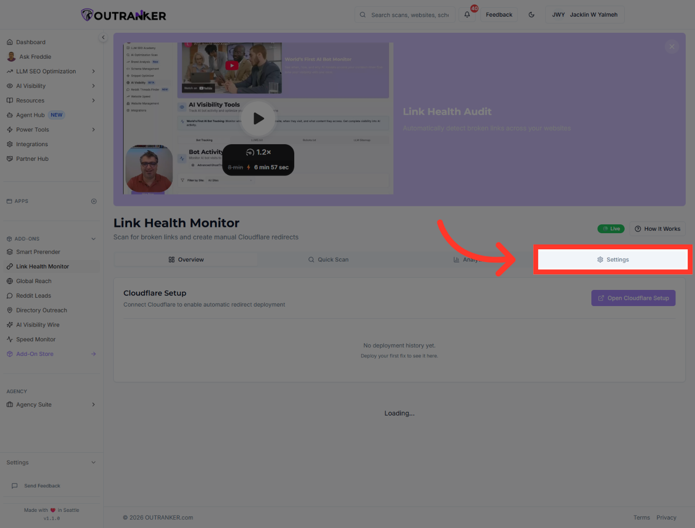 “In this video, you’ll learn how to configure link health alerts in the Outranker platform. We’ll go step by step, so you can turn on notifications, choose when alerts should be sent, and make sure they reach the right people.”